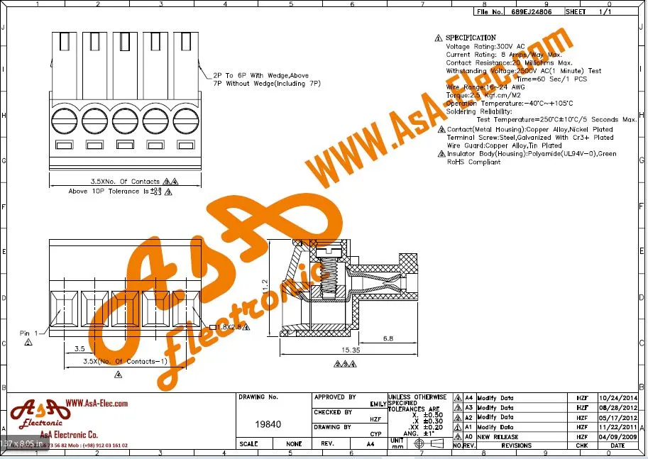 ترمینال فونیکسی 6 پین نر رایت و ماده PTR 3.5 MM