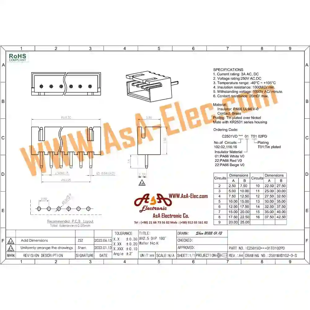 پین کانکتور دزدگیری 2.5 میلیمتری XH